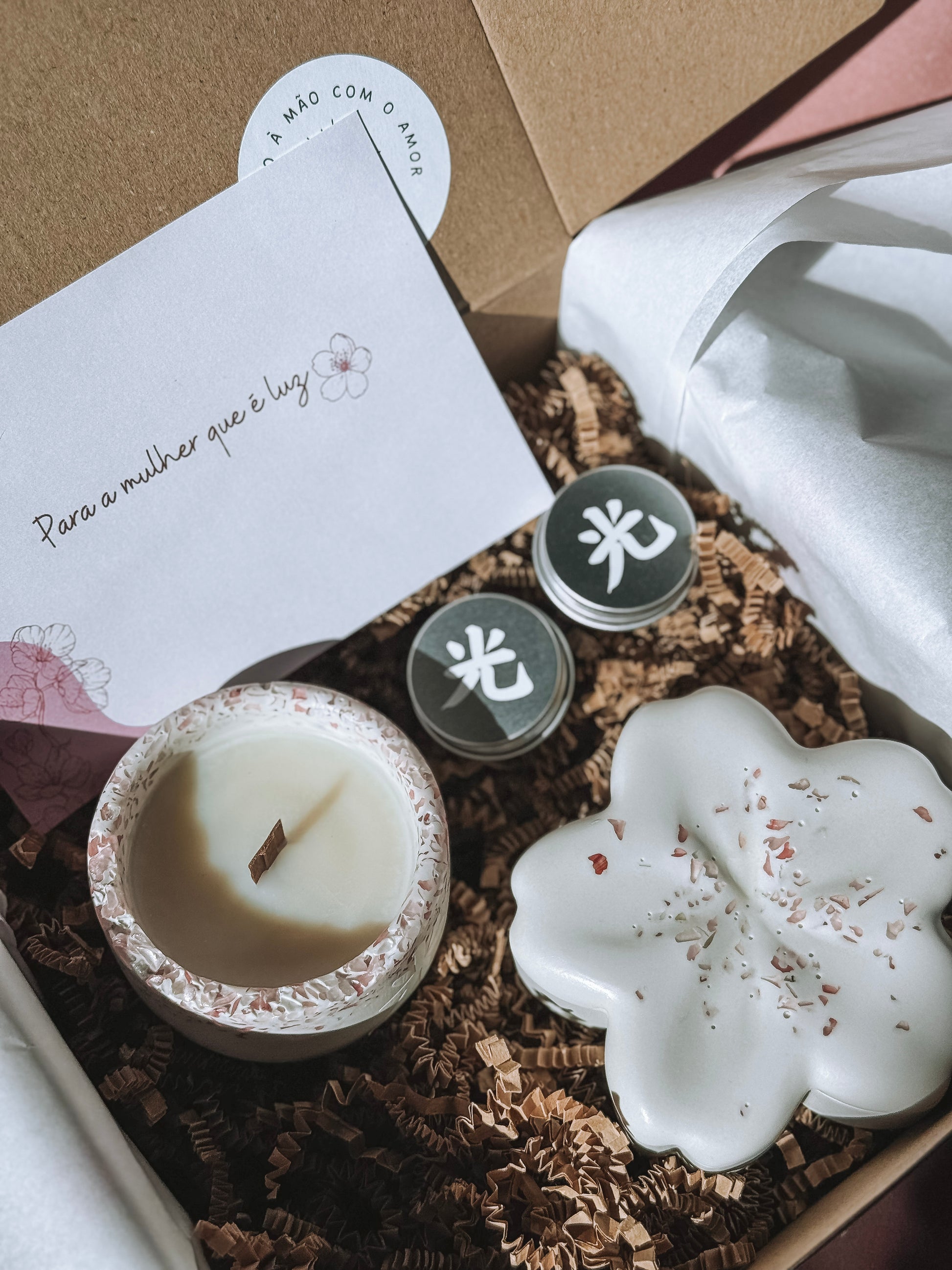 Criada para celebrar a energia feminina com delicadeza e intenção, a Box Especial Dia da Mulher reúne peças exclusivas pensadas para criar um momento de pausa, cuidado e luz.