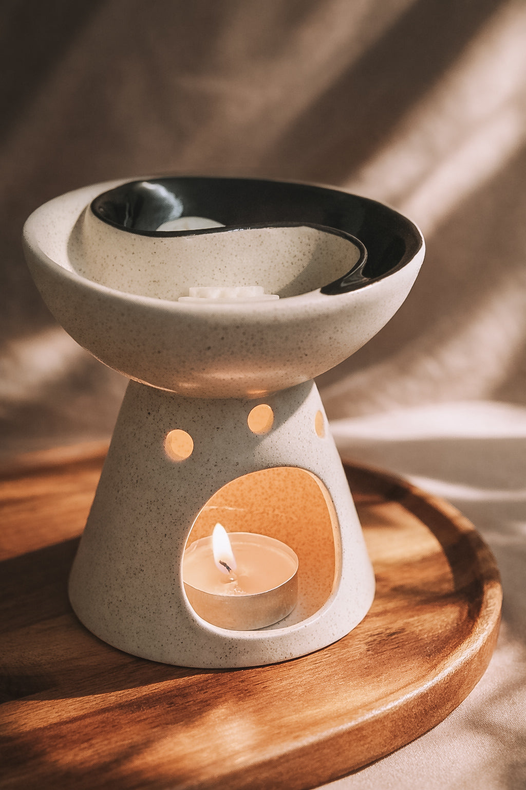 O queimador Yin-Yang foi criado para difundir fragrâncias de forma suave e equilibrada, transformando o ambiente num espaço de calma e harmonia. O seu design inspirado no símbolo yin-yang representa a dualidade serena entre luz e sombra, convidando à pausa e ao recolhimento.