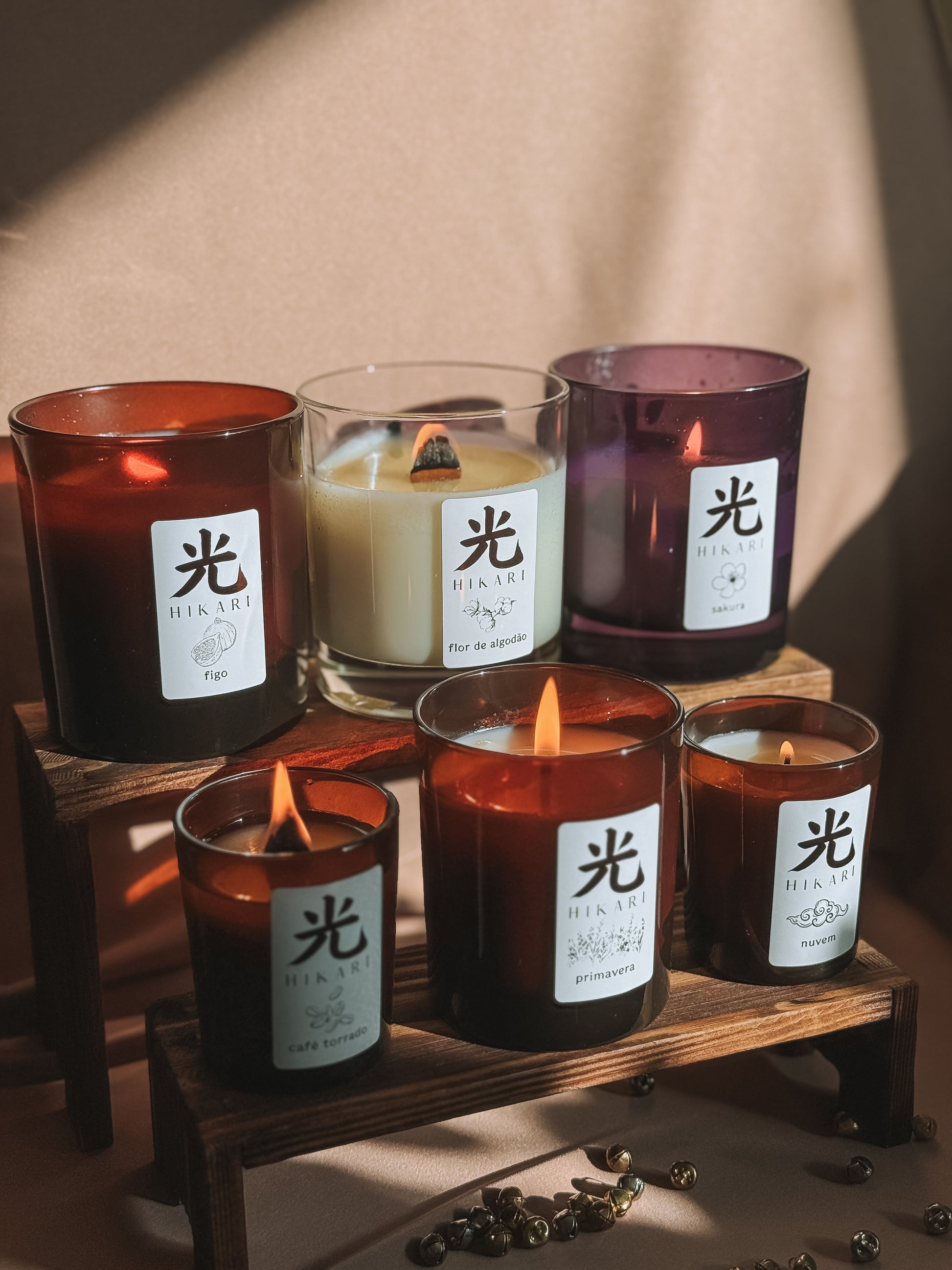 A fragrância é à tua escolha, entre várias opções da HIKARI, para que possas personalizar a vela ao teu gosto: