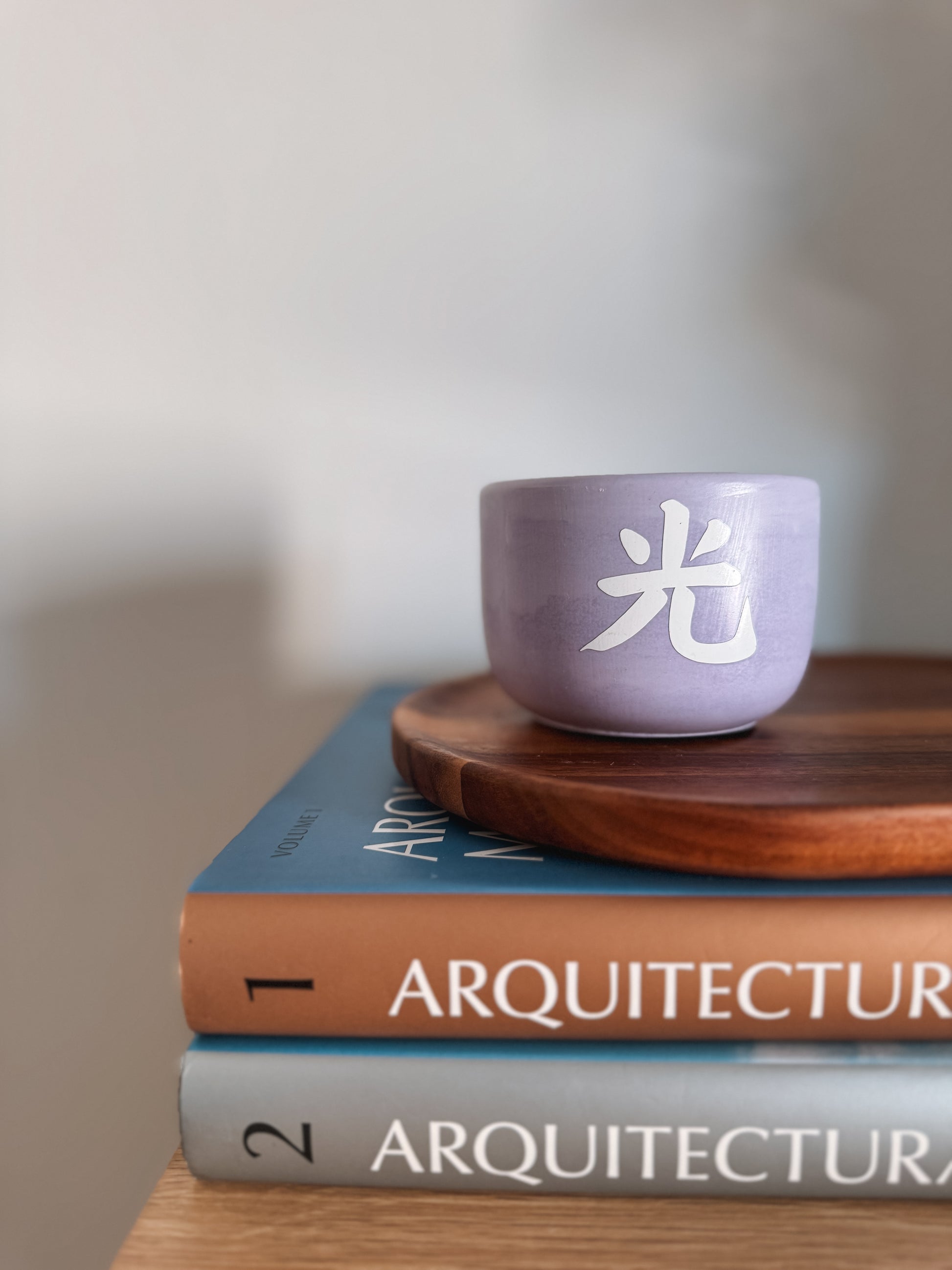 Cada copo é moldado e decorado à mão, com o tom lilás a criar um visual calmo, elegante e cheio de personalidade.