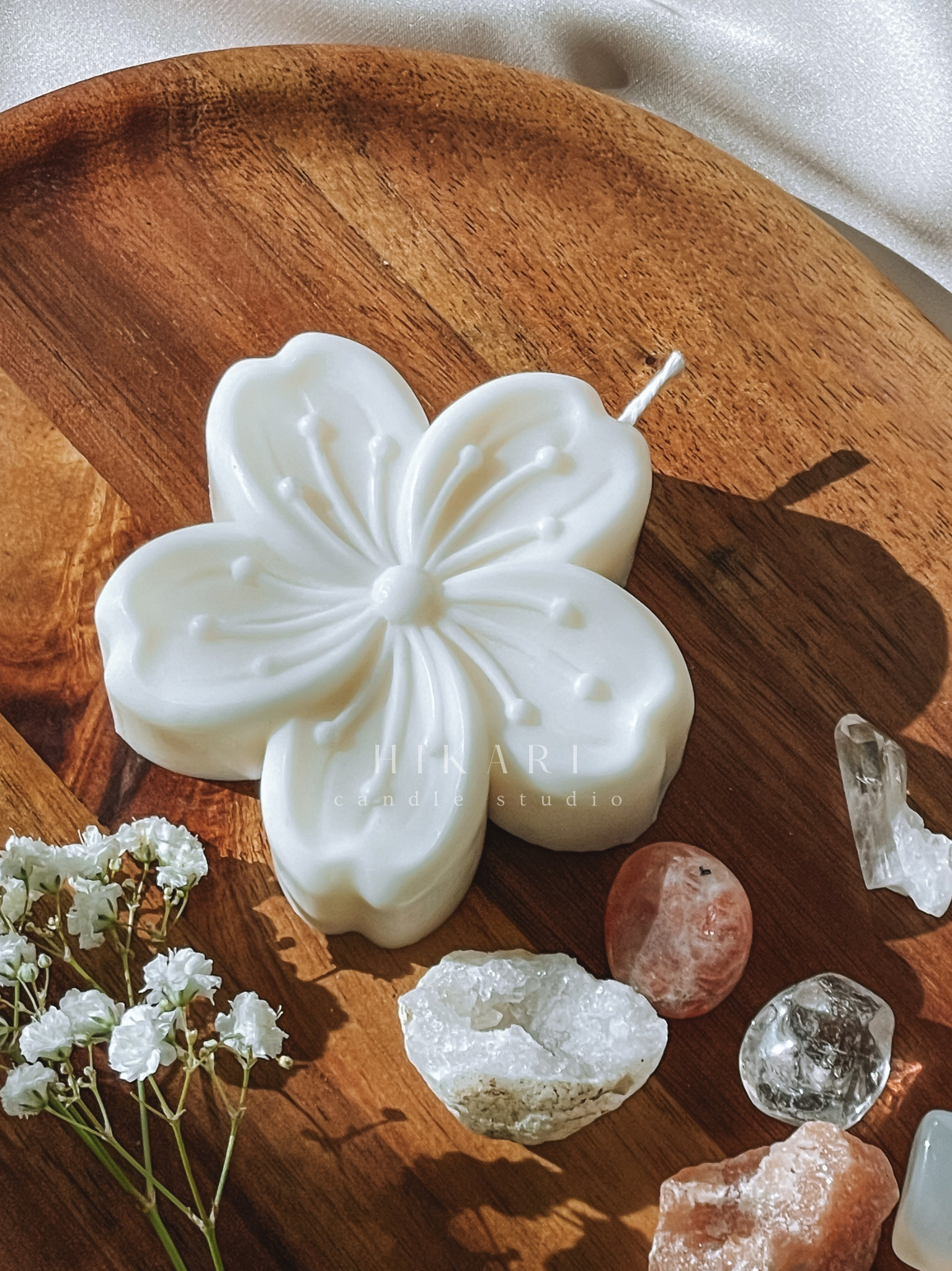 Com detalhes delicadamente esculpidos, evoca a suavidade das pétalas de sakura, símbolo de renovação, harmonia e contemplação na cultura japonesa.