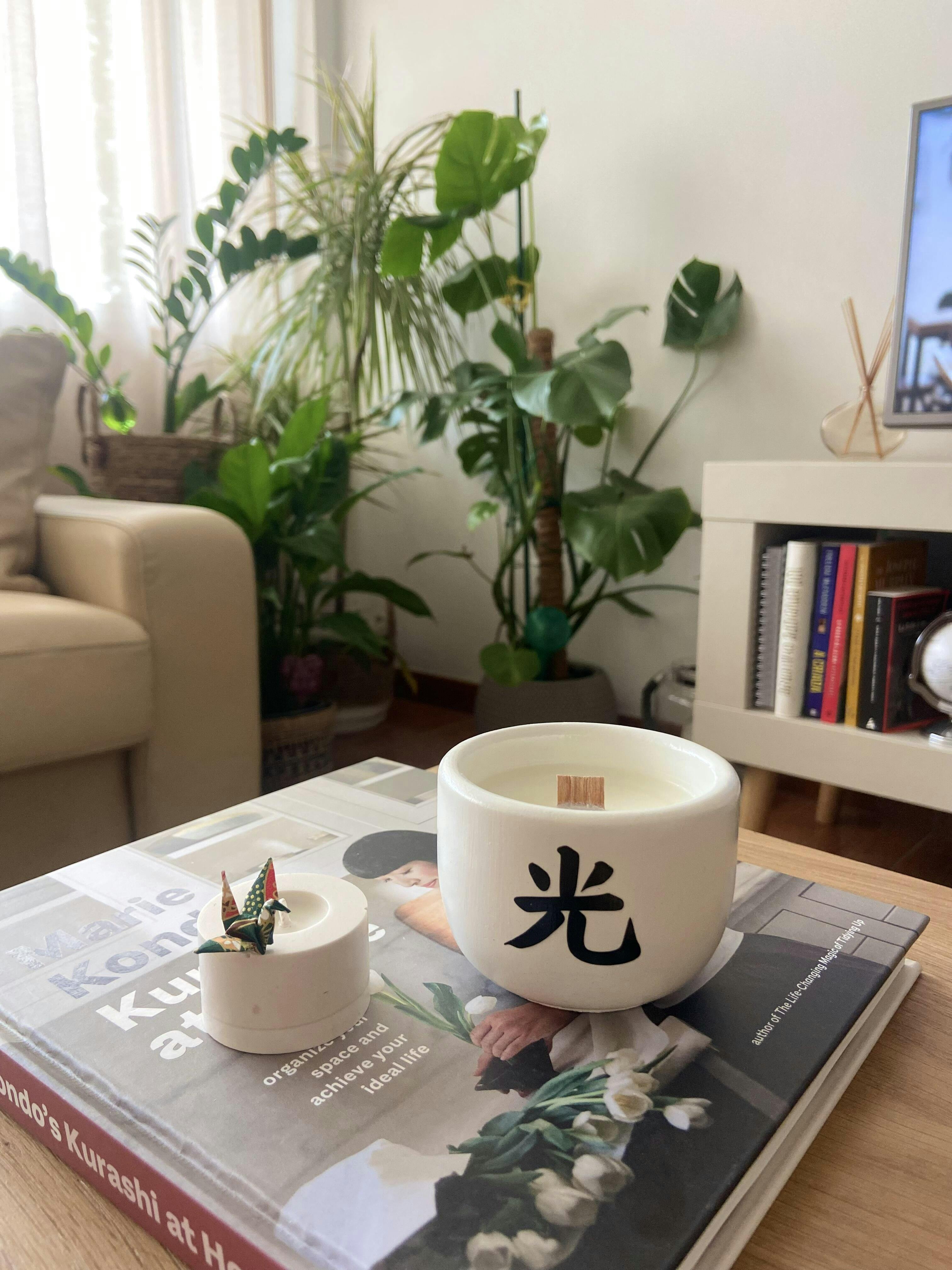 Ingredientes: Cera 100% vegan de côco e colza, fragância vegan, pavio de madeira com certificado FSC (Forest Stewardship Council)